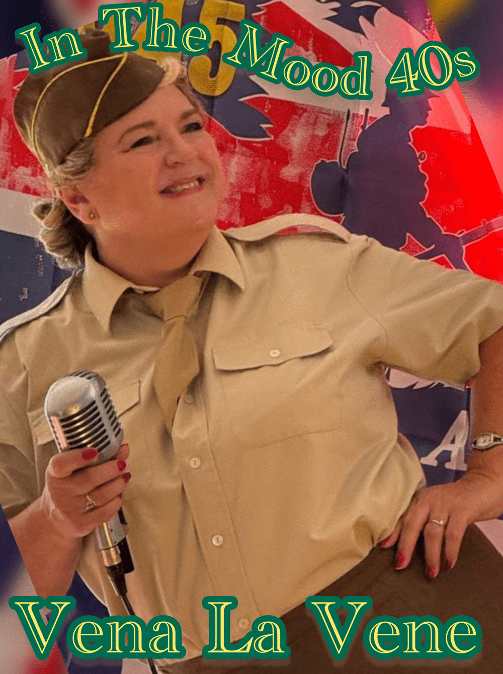 Debbie La Vene appears as “Vena La Vene” with her signature show In The Mood 40s — a nostalgic, uplifting tribute to the unforgettable sound of the 1940s. This memorable set blends much-loved favourites and stirring wartime classics, performed with warmth, charm and authentic period style. Complete with a genuine 1940s-style microphone, era-accurate outfits, and Debbie’s beautifully rich vocals, this show transports audiences straight back to one of the most iconic musical eras. Perfect for vintage events, themed celebrations, and anyone who loves the spirit of the Forties.